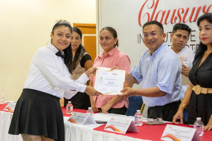 El coordinador del Centro Nacional de Desarrollo, Empleo y Productividad Riviera Maya, René Alamilla Magaña, presidio la ceremonia de graduación de 50 trabajadores que cursaron inglés básico y 93 que se capacitaron en Alimentos y Bebidas.