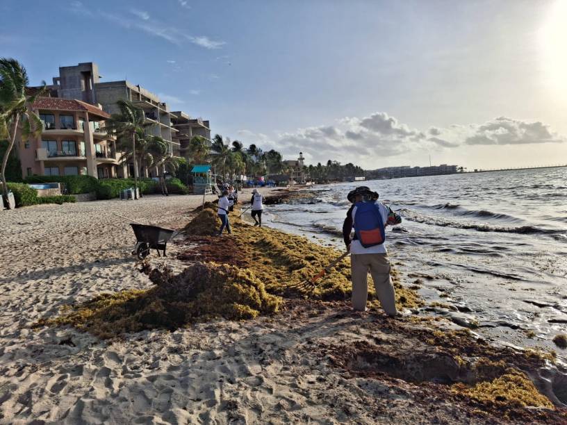 Cancún.- Como parte del Protocolo de Actuación ante el arribo masivo de sargazo presentado por la gobernadora Mara Lezama Espinosa en días pasados, este martes el Gobierno del Estado a través de la Secretaría de Ecología y Medio Ambiente (SEMA), en coordinación con la Secretaría de Marina y los gobiernos municipales, llevaron a cabo una limpieza simultánea de la macroalga en siete municipios de Quintana Roo.