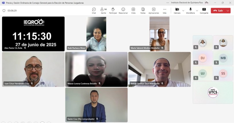 Chetumal, Quintana Roo; a 27 de junio. – Integrantes del Consejo General del Instituto Electoral de Quintana Roo (IEQROO), en sesión ordinaria, dieron por recibido los informes presentados por la Secretaría Ejecutiva y por la Dirección de Organización; así como, la aprobación de diversas actas, en el contexto del Proceso Electoral Extraordinario del Poder Judicial del Estado de Quintana Roo 2025.