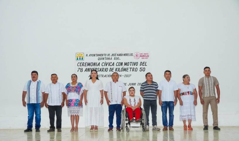 El presidente municipal, Erik Borges Yam, celebró el aniversario de la fundación del Kilómetro 50, hoy José María Morelos, desde la puerta de la zona maya, recordó la historia, símbolo de lucha, resistencia y esperanza de toda una ciudad en transformación que nació como fruto de la voluntad del pueblo, en medio de la selva, entre el sudor de quienes trabajaban la milpa y el sueño compartido de prosperidad.