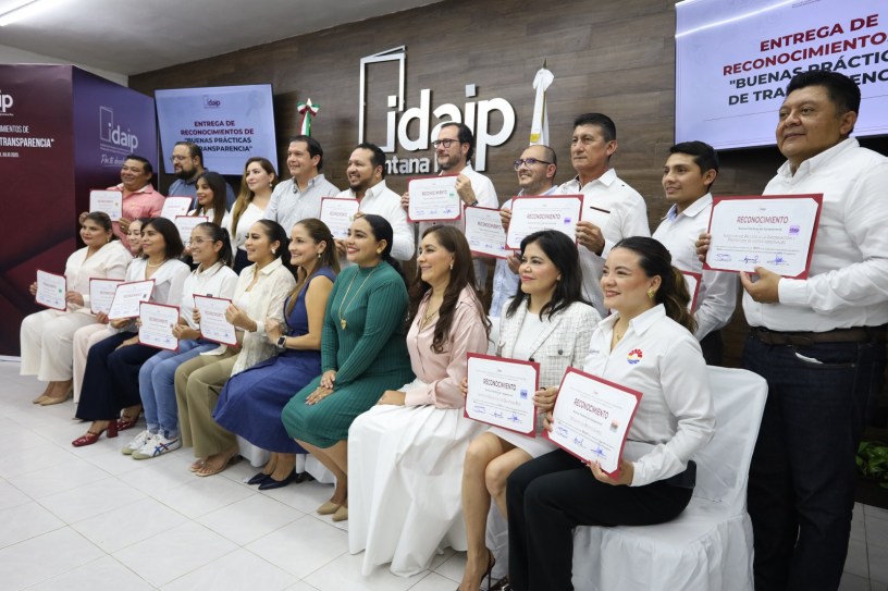 El IDAIPQROO entrego reconocimientos por cumplimiento de obligaciones de transparencia a 14 entes públicos; órganos autónomos y presidencias municipales de Othón P. Blanco; Bacalar; Felipe Carrillo Puerto y a los enlaces de transparencia de los municipios del Estado.