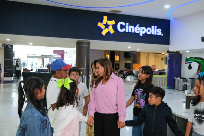 La gobernadora estuvo acompañada por Verónica Lezama Espinosa, presidenta honoraria del DIF estatal, así como estudiantes del programa Pilares-DIF de Villas Otoch Paraíso, quienes asistieron a la proyección gracias al apoyo de ADO.