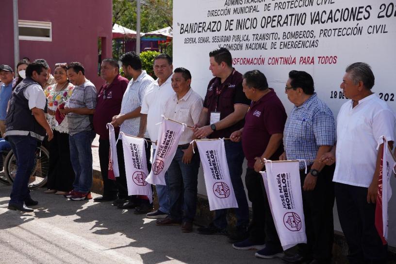 José María Morelos, Q. Roo. – Con la participación de corporaciones de seguridad, autoridades municipales dieron el banderazo de inicio al Operativo Vacacional de Verano 2025, destinado a reforzar la prevención de accidentes y salvaguardar a residentes y visitantes durante esta temporada.