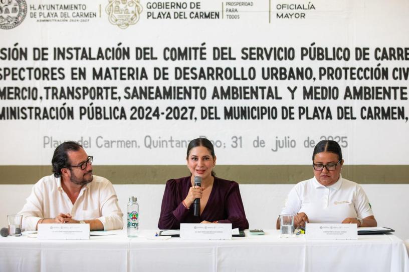 Durante su mensaje, destacó la importancia del trabajo que realizan los inspectores en contacto directo con la población, al supervisar el cumplimiento de normas en materia urbana, comercial y de servicios. “Queremos servidoras y servidores públicos capacitados, con vocación y profundo amor por Playa del Carmen”, expresó.
