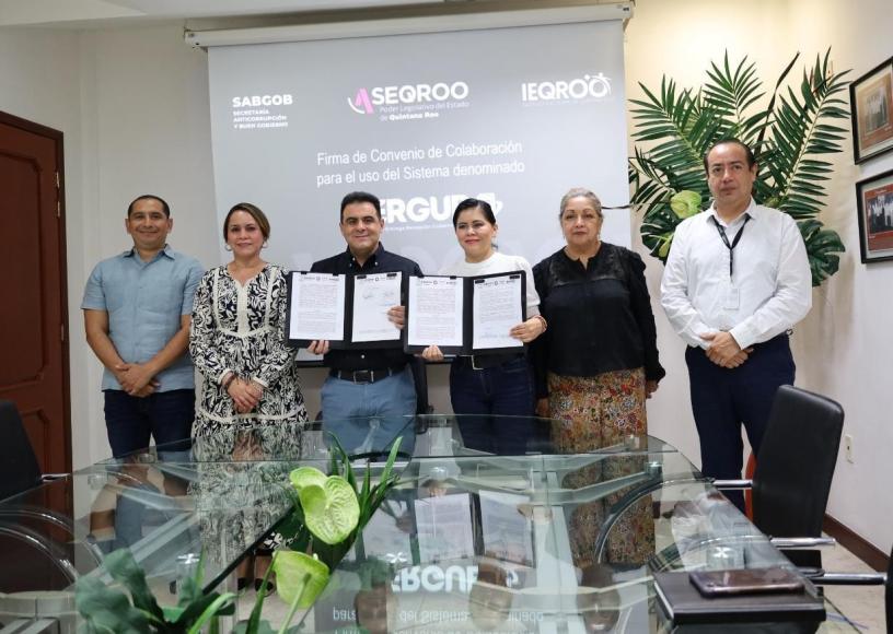 Firma de convenio que celebran la Secretaría Anticorrupción y Buen Gobierno (SABGOB), la Auditoria Superior de Quintana Roo y el Instituto Electoral de Quintana Roo para el uso del sistema “PERGUB” de la plataforma digital para entrega recepción gubernamental.