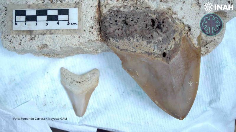 Tulum, Quintana Roo, 7 de agosto de 2025.— Uno de los hallazgos paleontológicos más asombrosos del Caribe mexicano ya forma parte del acervo permanente del Museo Regional de la Costa Oriental (Mureco), en Tulum. Se trata de dos dientes fósiles del extinto tiburón Megalodón, localizados en el cenote Maravilla de Puerto Morelos por el buzo Juan Cardona e identificados por el equipo del Gran Acuífero Maya (GAM) en colaboración con el Instituto Nacional de Antropología e Historia (INAH).