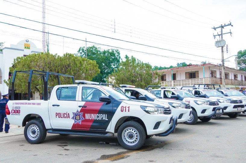 José María Morelos, Q. Roo.— En un hecho sin precedentes, el presidente municipal Erik Borges Yam, junto a la gobernadora Mara Lezama Espinosa, entregó cinco patrullas nuevas tipo “Pick Up” doble cabina, totalmente equipadas, para fortalecer la vigilancia y la prevención del delito en todo el municipio.