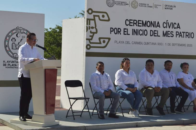 Playa del Carmen, Quintana Roo, 1 de septiembre de 2025.— Con el izamiento de la bandera monumental en la Plaza 28 de Julio, el Ayuntamiento de Solidaridad dio inicio al mes patrio con un llamado a la unidad, la reflexión y el compromiso ciudadano.