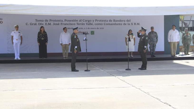 Chetumal.— El general de División de Estado Mayor, José Francisco Terán Valle, rindió protesta como nuevo comandante de la Décima Región Militar, con jurisdicción en los estados de Yucatán, Campeche y Quintana Roo, en sustitución del general de brigada Cristóbal Lozano Mosqueda.